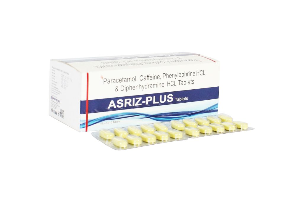 Asriz-PLUS โ A multi-action formula for pain, cold and sinus relief.