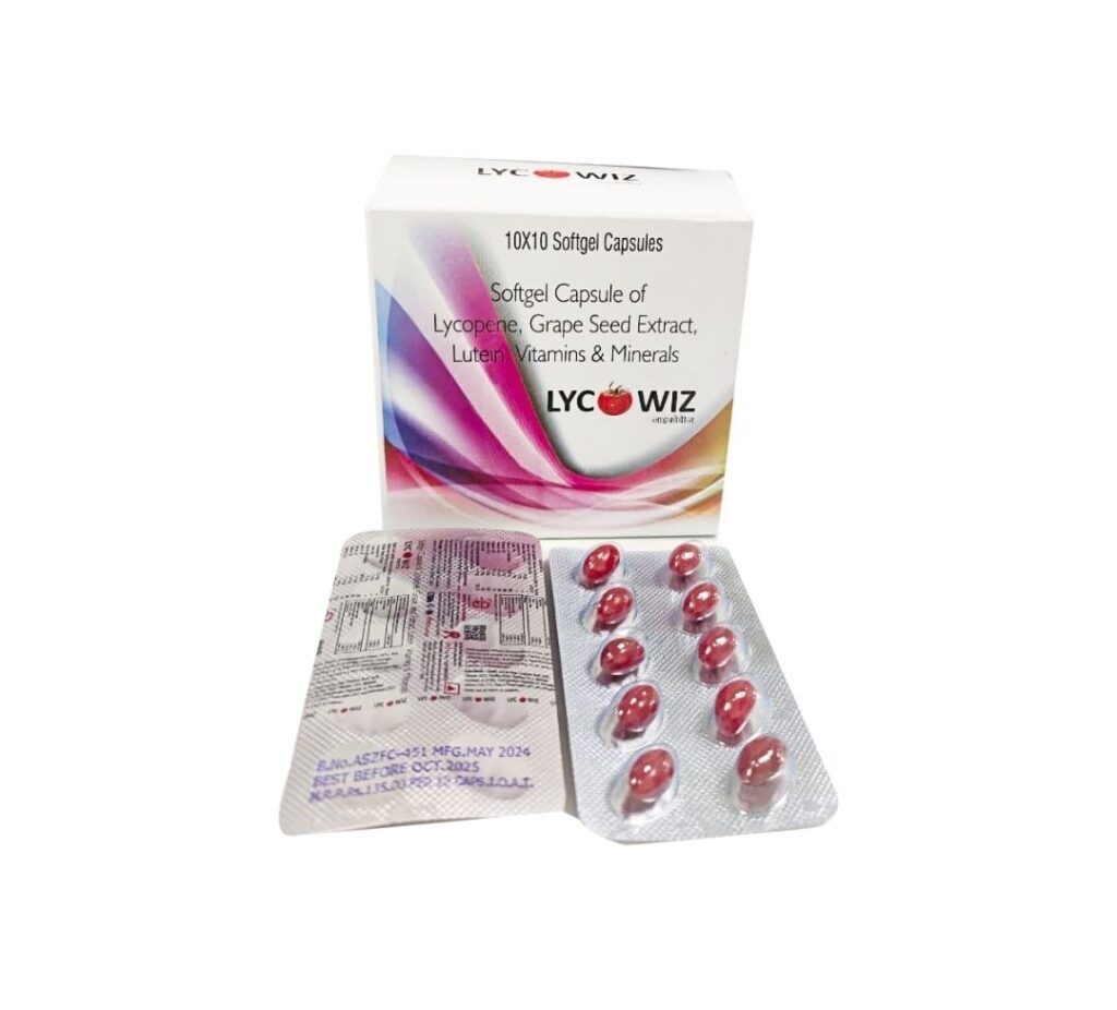 Antioxidants play a vital role in maintaining healthy, youthful skin by protecting it from oxidative damage caused by free radicals. These free radicals are generated due to factors such as UV radiation, pollution, stress, and unhealthy lifestyle habits. Over time, oxidative stress can lead to premature aging, dullness, pigmentation, and loss of skin elasticity. Antioxidants such as grape seed extract, lycopene, and lutein help neutralize these harmful molecules, thereby reducing cellular damage. As a result, the skin is better able to repair itself, retain moisture, and maintain a natural glow. Therefore, antioxidant-rich supplementation like LYCOWIZ Softgel Capsule for Skin Care plays an essential role in supporting long-term skin protection and overall skin vitality.