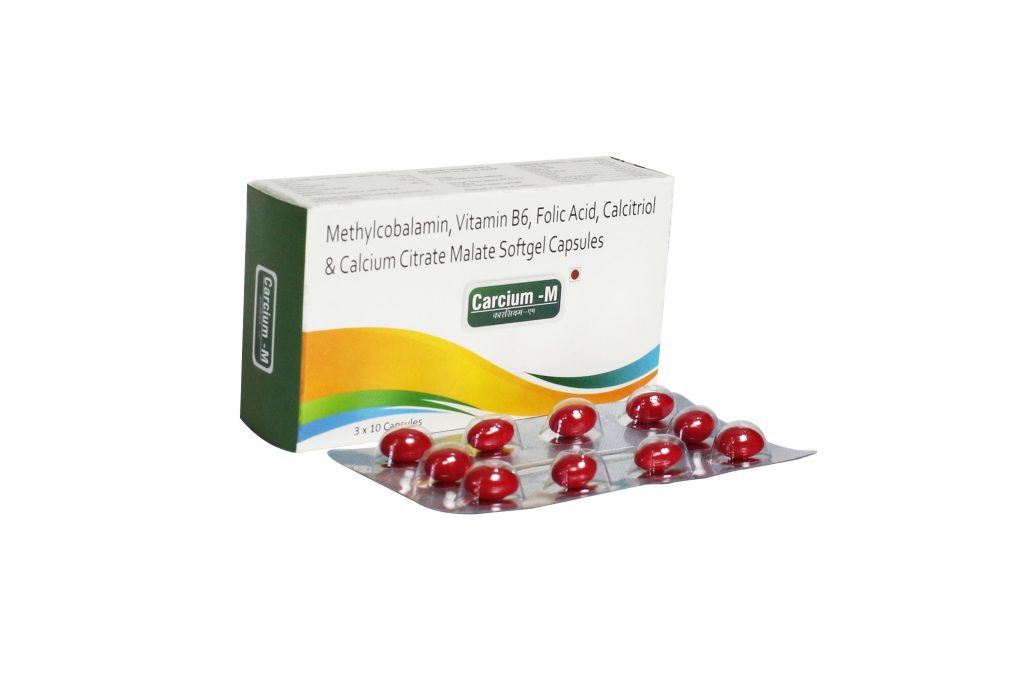 CARCIUM-M (S/G) is an advanced bone and nerve health supplement combining Calcium Citrate Malate (500 mg) with essential vitamins and minerals. It strengthens bones, supports nerve function, red blood cell formation, and musculoskeletal health.